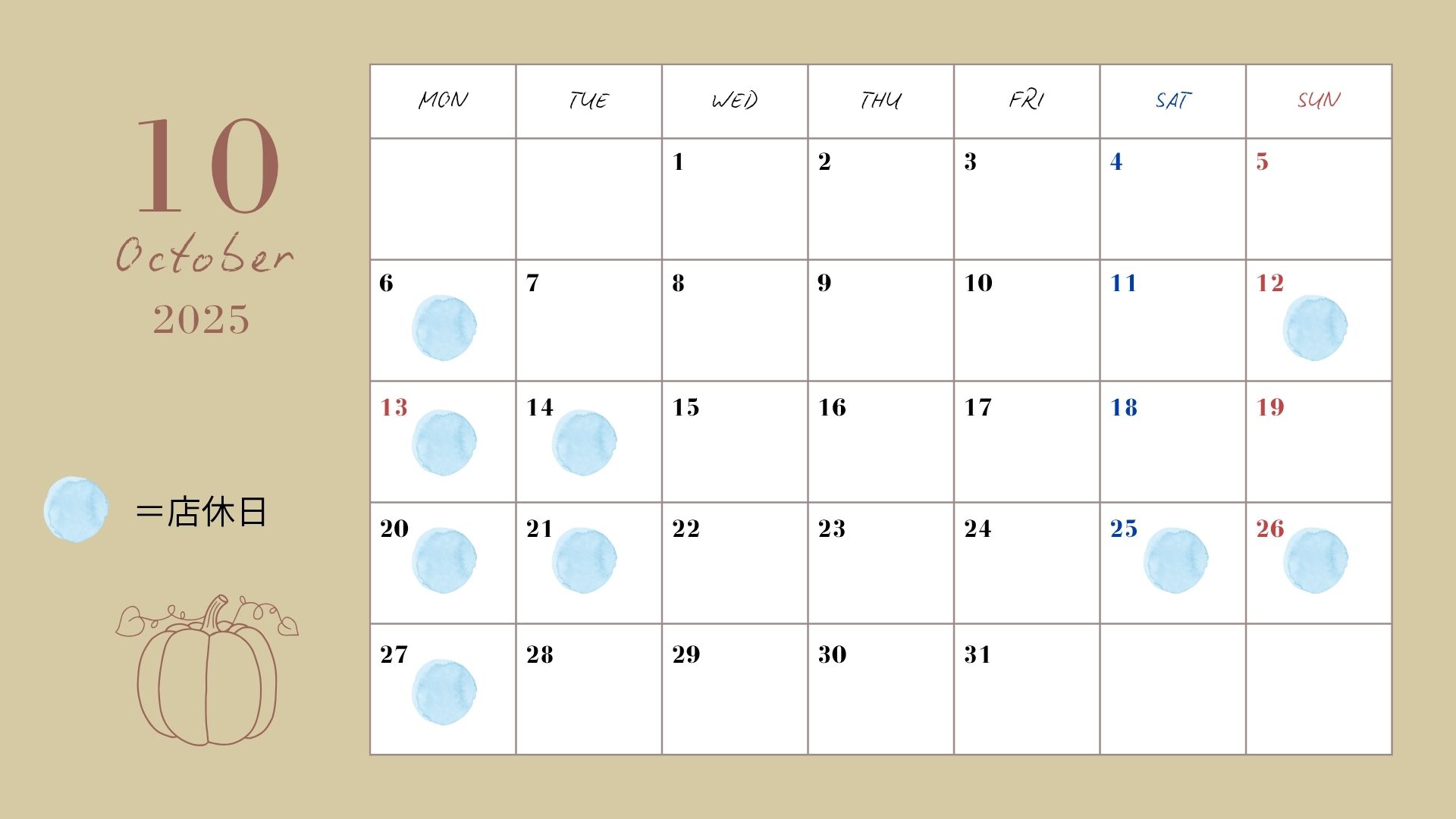 ROKA hair > お知らせ > 10月の店休日のお知らせ > カラフル パステル シンプル 月曜始まり 2025年 月間 カレンダー